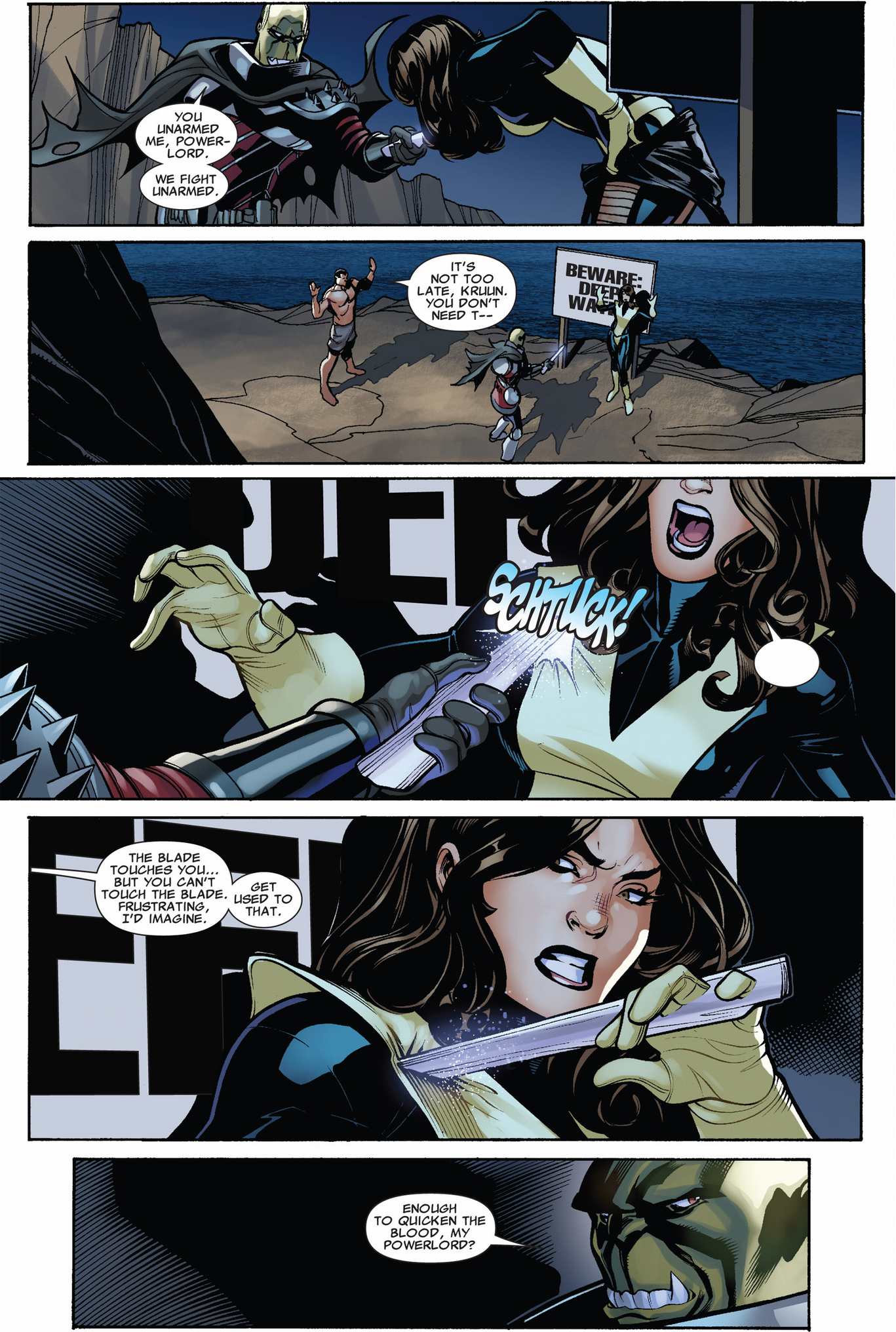 If you’re wondering why Colossus won’t armor up, it’s because Kruun hit him with a syringe full of the mutant cure. It’s only temporary though and Colossus retained his powers in the latter issues.