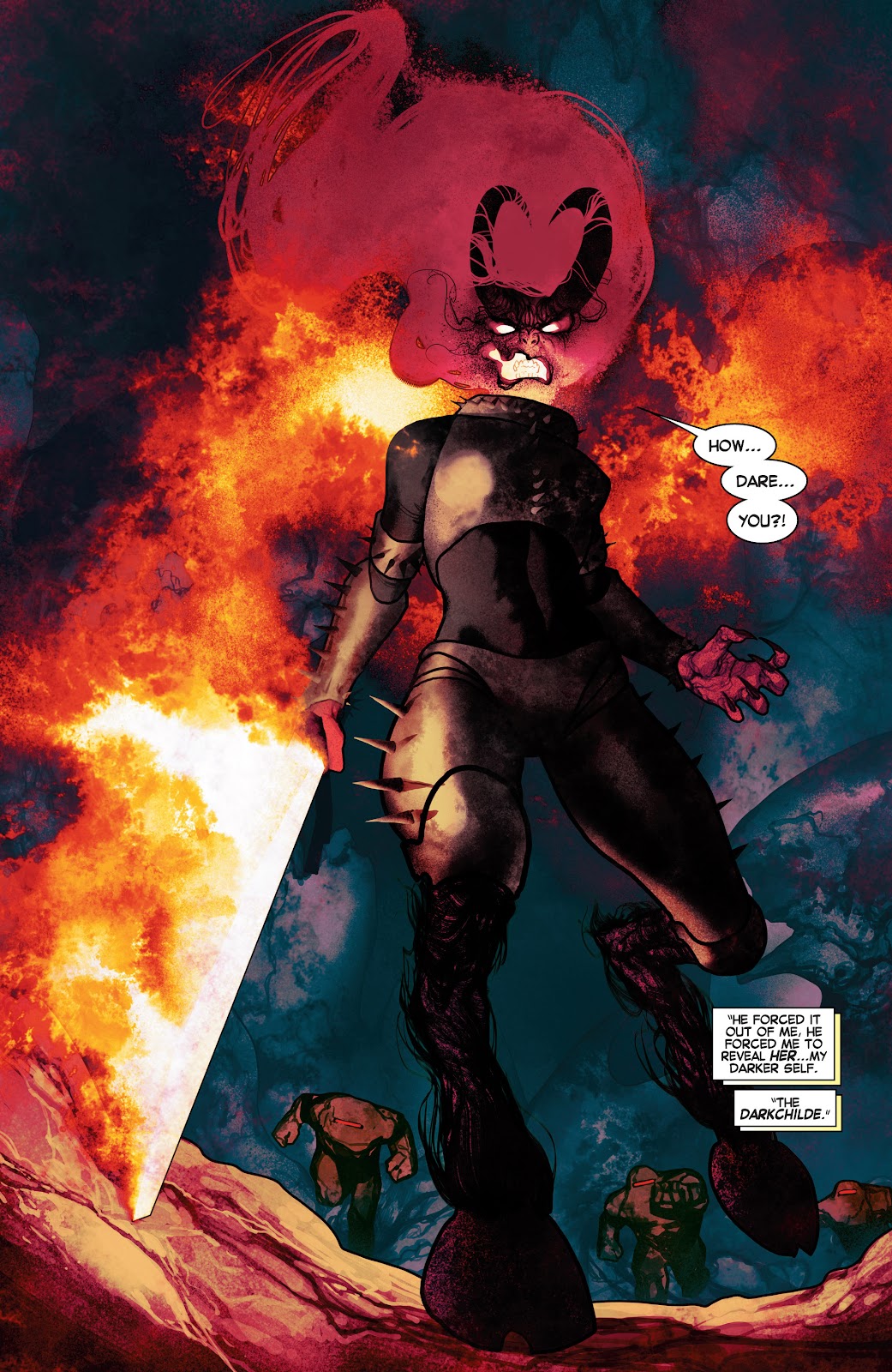 Dormammu tries to make Magik, a member of the X-men, submit and then accidentally releases her other form, the Darkchilde.