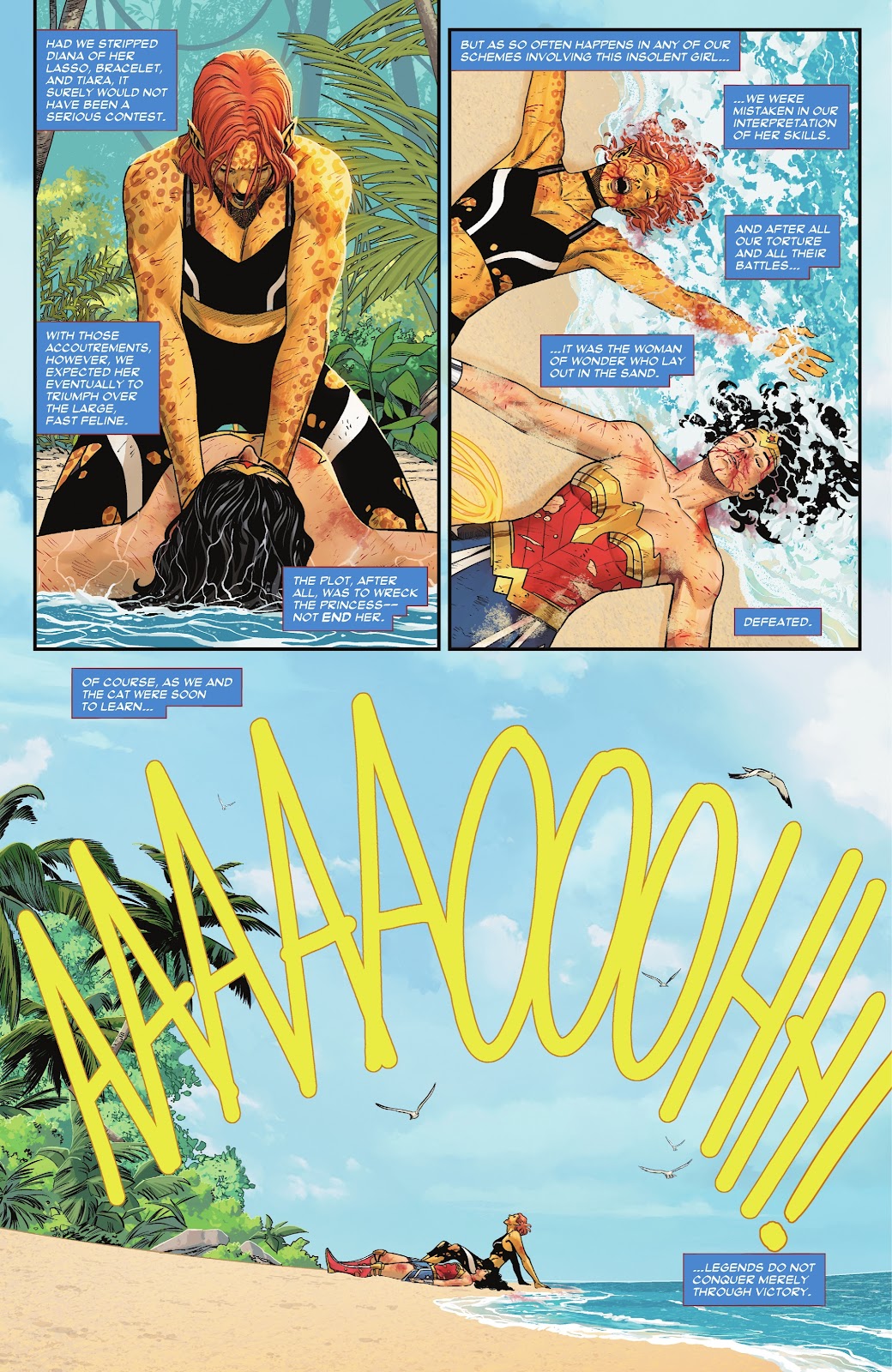 The Sovereign, having failed twice in his attempts to break and control Wonder Woman, casts her off on an island where they also marooned another person they failed to break with the Lasso of Lies: the Cheetah. His plan was for the two mortal enemies to fight each other to the death, with the expectation that Wonder Woman would emerge victorious. His underlying motive was for Wonder Woman to break down after killing the Cheetah. However, to his dismay, Wonder Woman lost to the Cheetah but managed to reach out to her humanity, ending the fight without any death.